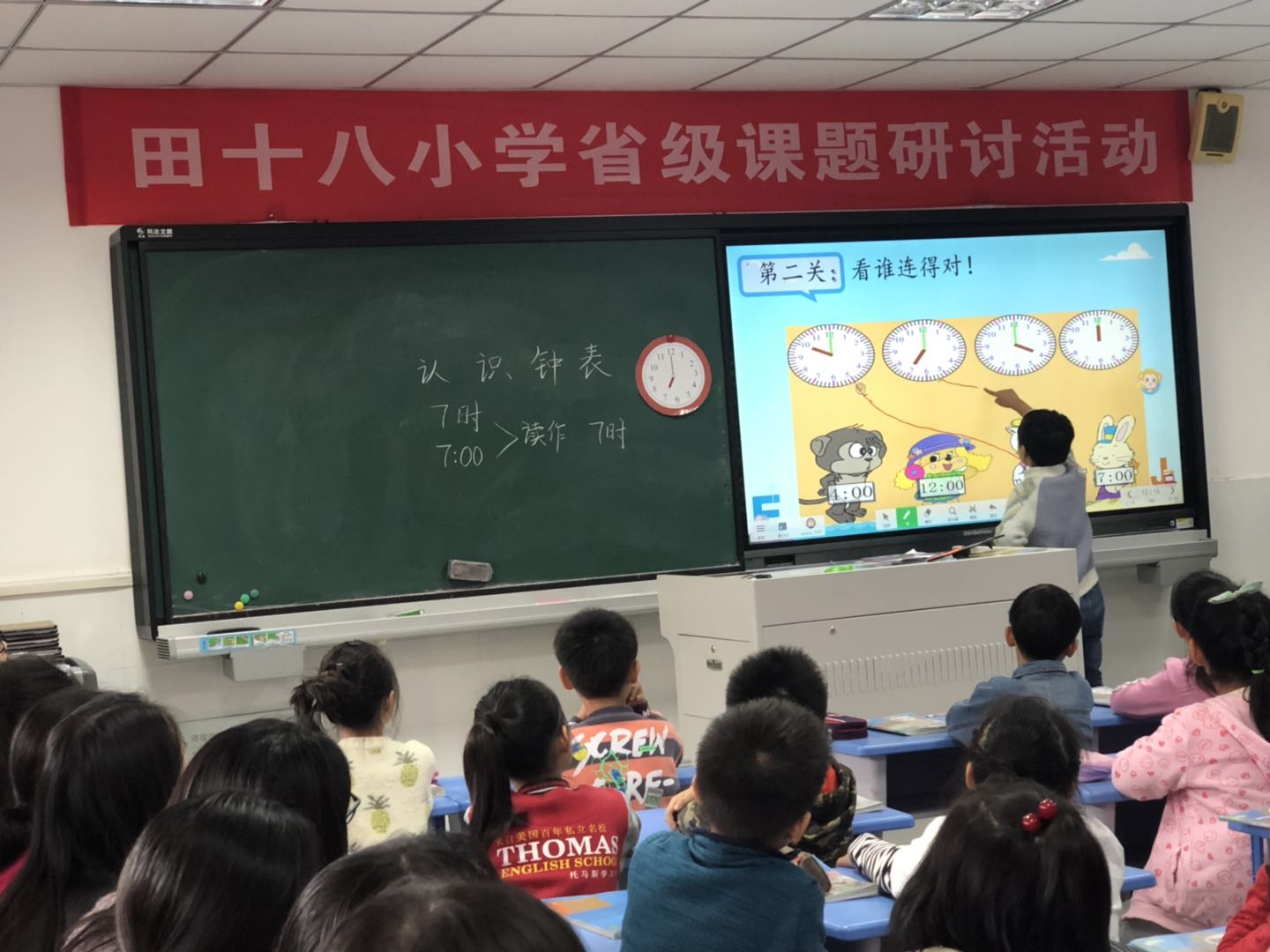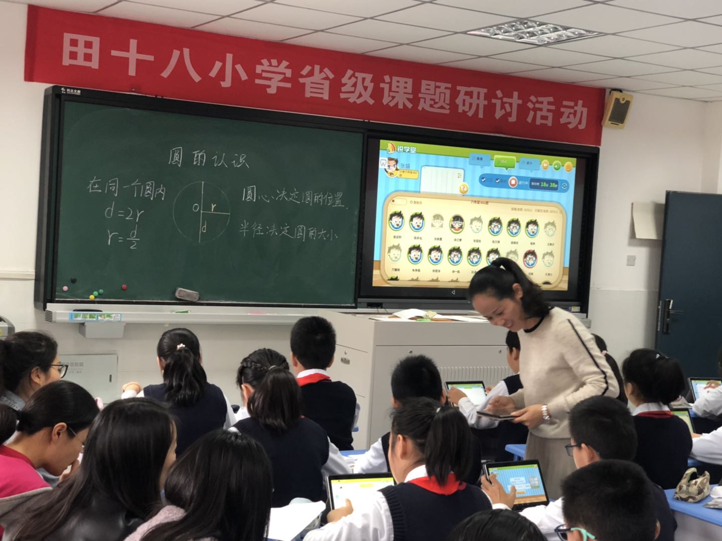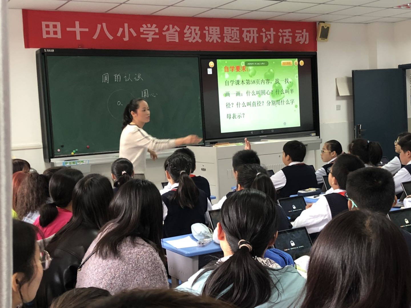 本次活动由田十八小的两位老师执教,张娟老师借助锐学堂互动教学平台系统执教了六年级上册《圆的认识》,余黎老师基于希沃白板互动教学平台执教了一年级上册《认识钟表》。