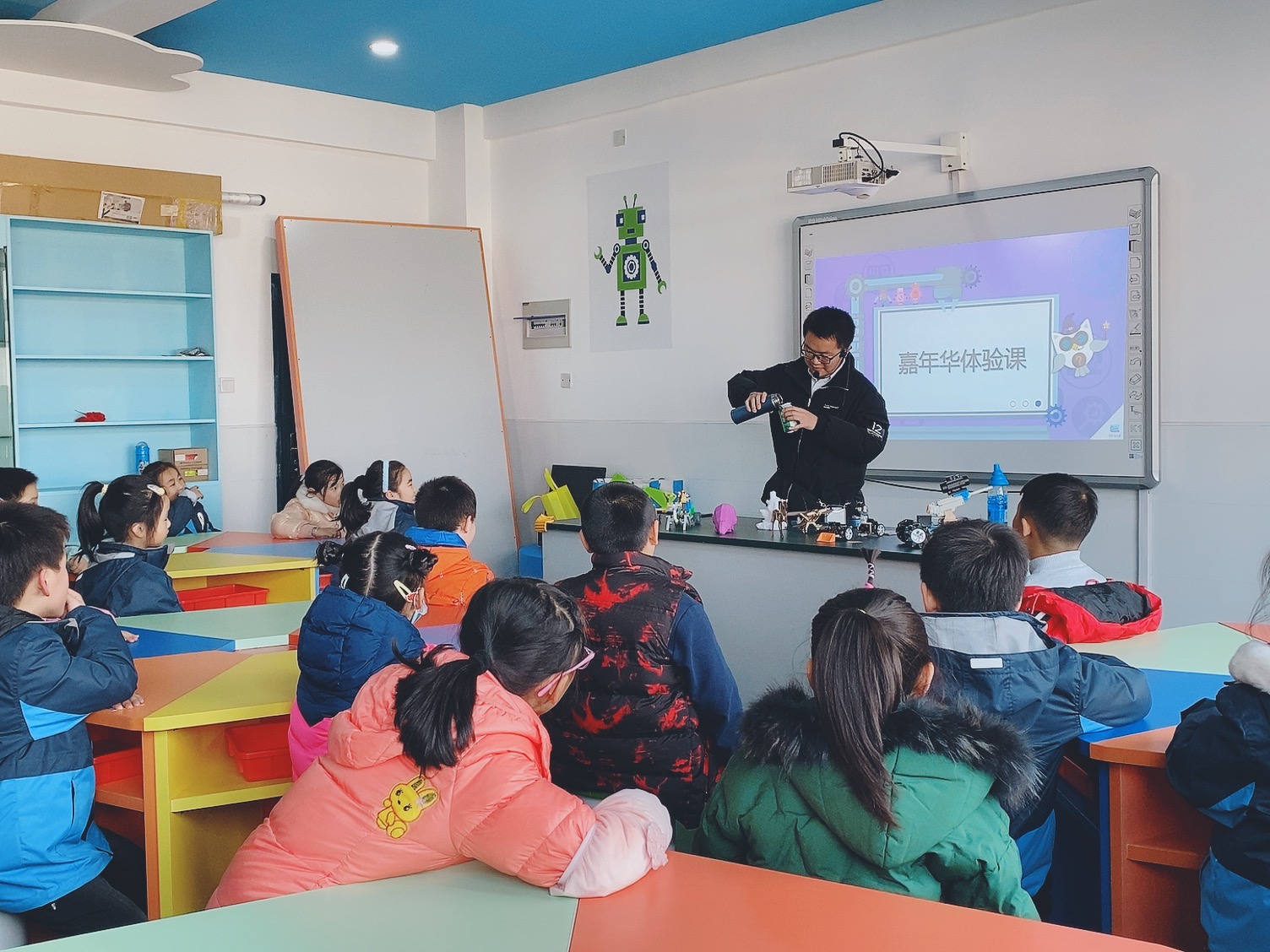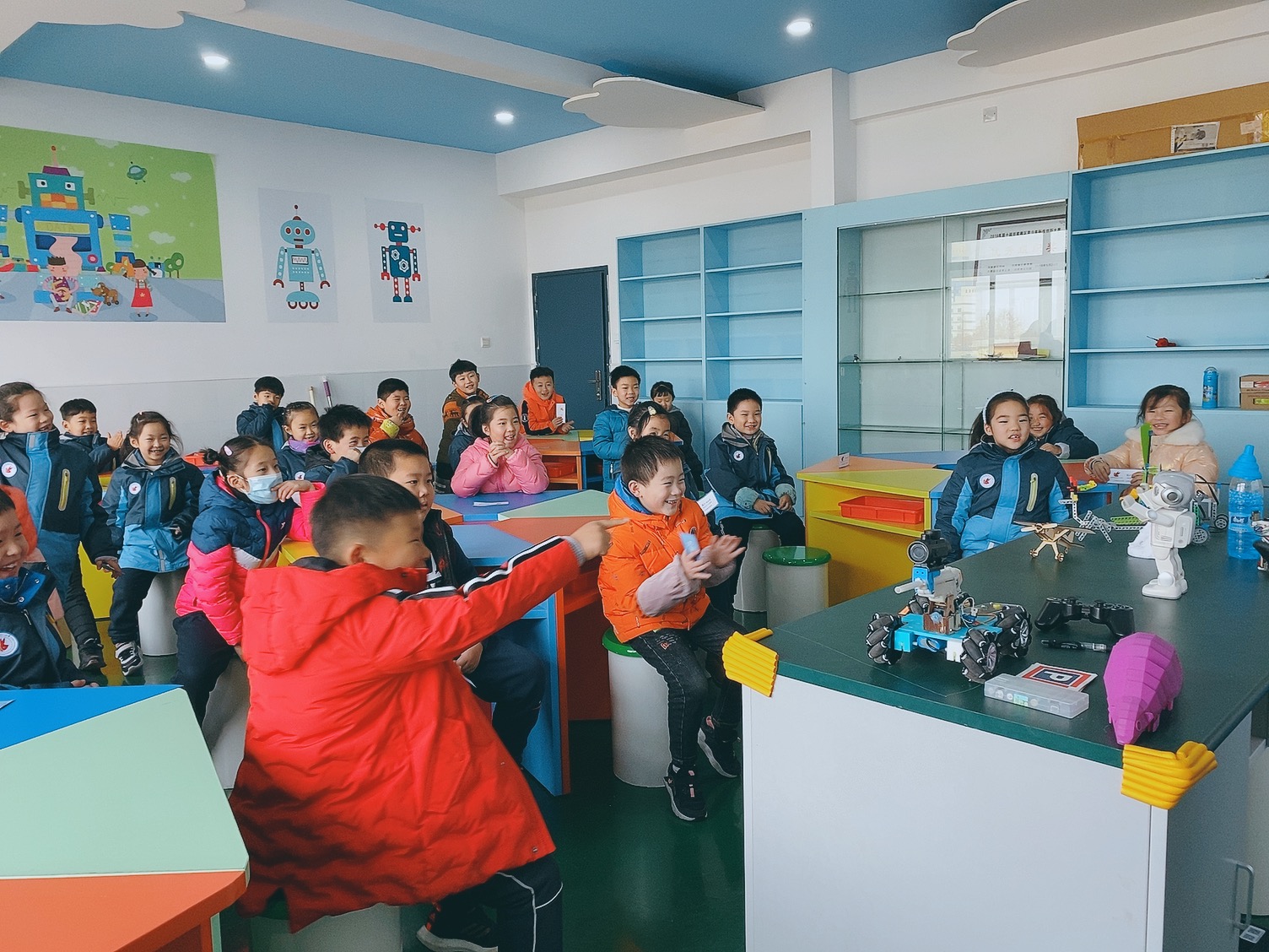 学校请来的意若思编程老师为同学们带来了非常精彩的电子积木、3D打印、激光切割、智能硬件、机器人和创意编程展示和体验。