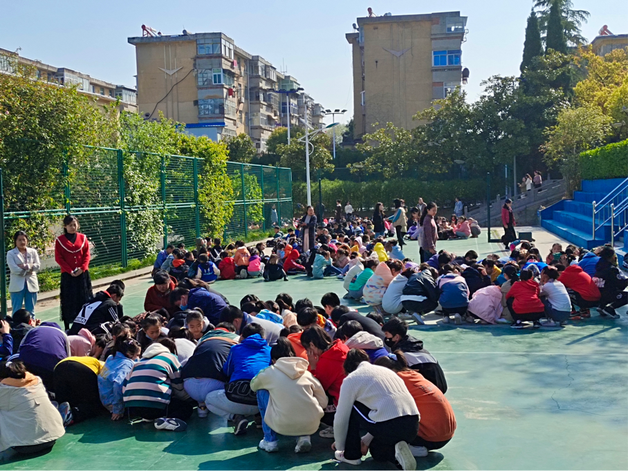 在学生疏散过程中,每个区域都安排了专门教师进入相应位置,负责学生的疏散安全及速度,避免出现摔伤、扭伤、碰撞等现象。演练短时高效,每一位老师和学生都顺利到达了指定位置后,迅速抱头蹬下待命,随即各班班主任迅速维持好各班纪律,清点人数,并逐级向上汇报。全部演练结束后,王君副校长对本次演练进行总结。