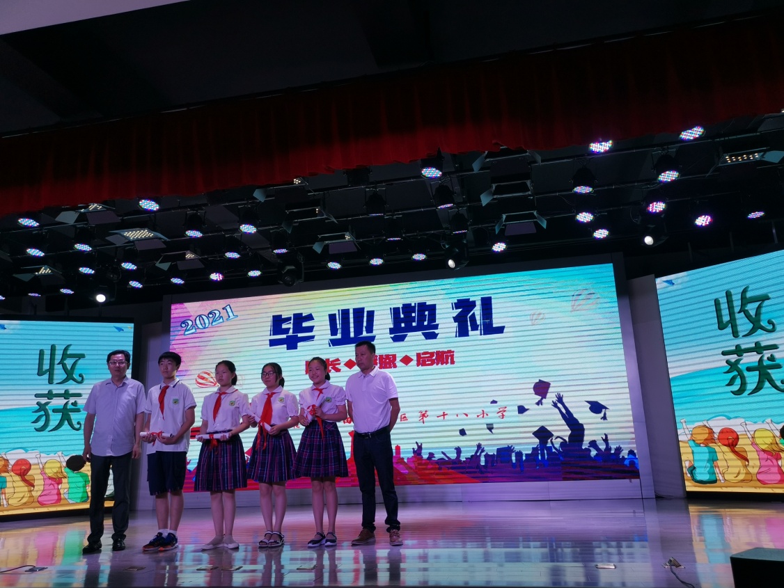 六月的浅夏栀子花开,浓浓的绿意在新小校园里弥漫,深深的离情在师生们心中荡漾。回首六年生活的点点滴滴,那么多的美好值得留恋,那么多的感动值得铭记,那么多的瞬间值得用心回味。六年级毕业生即将告别母校,踏上新的学习征程。为了给孩子们送去一份厚礼,在心中留下更美好的回忆,2021年6月28日,我校举行了主题为:成长·感恩·启航的毕业典礼。