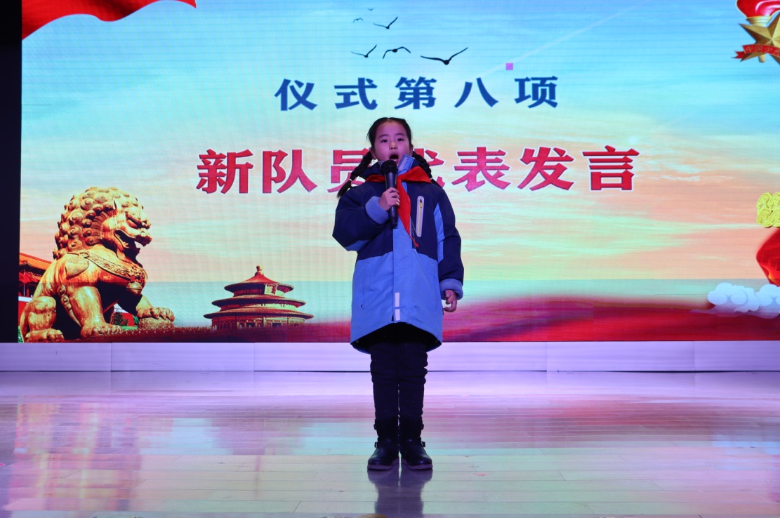 钱刚校长的发言,对新入队的队员们表示祝贺并寄予厚望,新队员代表孙可馨的讲话,表达了全体新队员的心声。