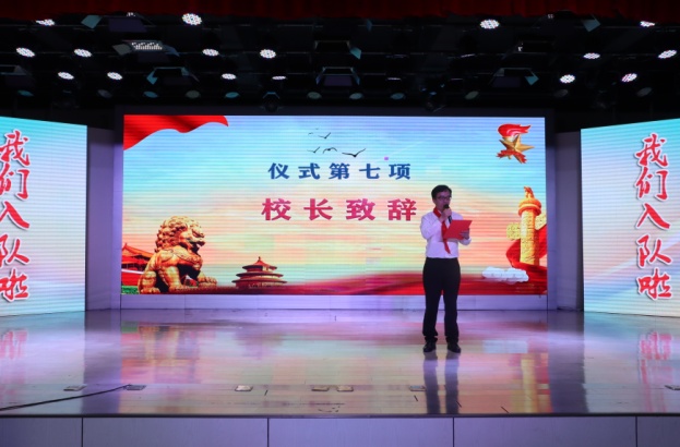 李多祥副校长的发言,对新入队的队员们表示祝贺并寄予厚望,新队员代表王昕瑷的讲话,表达了全体新队员的心声。