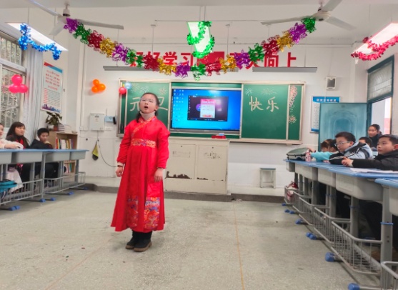 节目形式不拘一格,内容丰富,精彩纷呈,有唱歌、舞蹈、朗诵、相声,游戏互动等……活动中,孩子们热情高涨,积极参与,充分发挥了自己的特长.笑声欢呼声响成一片,校园里、班级里洋溢着一片欢声笑语。联欢会现场沉浸在一片欢乐的海洋之中,“传承中华文化,喜迎元旦佳节”主题活动圆满完成。