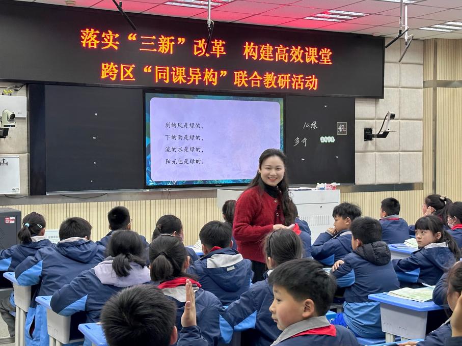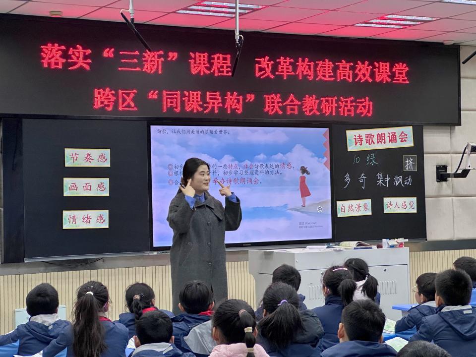为进一步深化教学交流,激发教学创新活力,携手推进“三新”改革(新课标、新教材、新课堂)的实践与探索,搭建互学互鉴、共促成长的平台,田家庵区第十八小学教育集团与凤台县毛集区胡晗小学语文名师工作室联合,特邀省级岳文飞小学语文名师工作室,于2025年3月18日下午开展现代诗教学“同课异构”教学研讨活动。