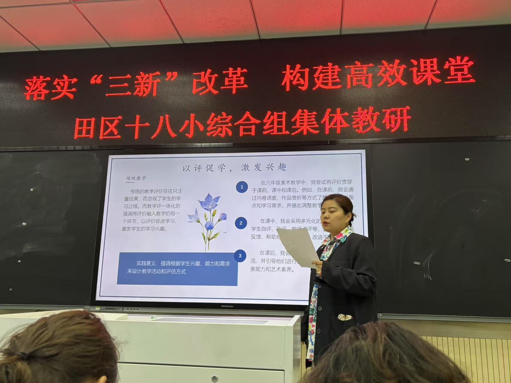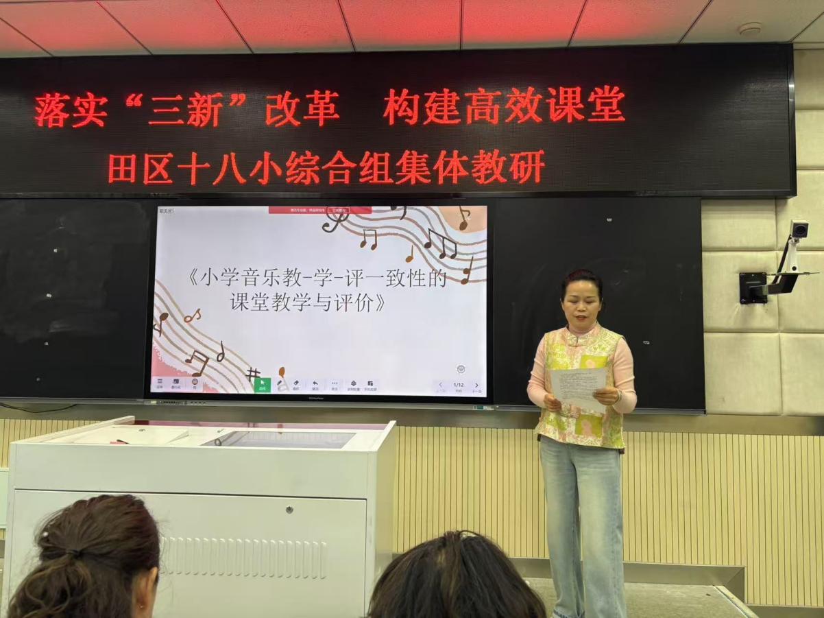 艺术组杨德隽老师从教学评是什么,为何要推进教学评一体化,如何开展的三个方面进行阐述,教学评价不是终点,而是促进学生艺术成长的脚手架,持续优化评价机制,让每个孩子在音乐课堂上找到自己声音。