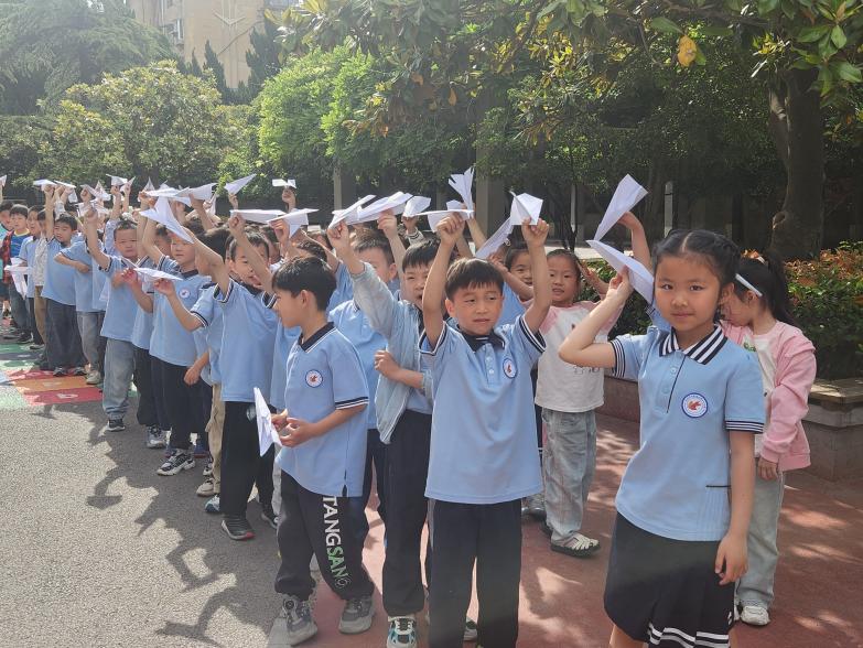 纸飞机凌空,放飞童心梦想。一年级的孩子们在老师的指导下,认真折叠着手中的纸。一张张A4纸在孩子们的巧手折叠下,不一会儿,就变成一架架形态各异的纸机。"看,我的飞机飞得最远!"在操场上,孩子们兴奋地比试着谁的纸飞机飞得更高更远。一架架纸飞机划出优美的弧线,简单的纸飞机不仅让孩子们体会到动手的乐趣,更在他们心中播下了科学的种子。