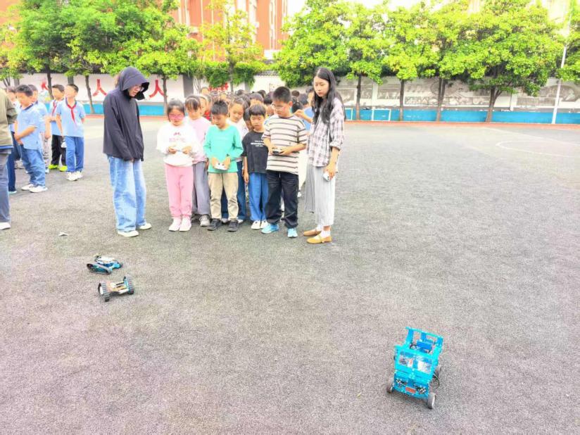 操场上的智能机器车体验区更是吸引了不少学生。孩子们通过手柄控制智能小车,零距离体验科技的魅力。这一环节不仅让学生体验人工智能技术,更将科技的种子埋在了孩子们的心间。