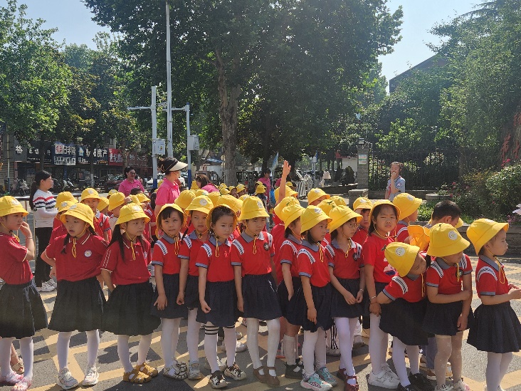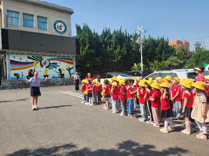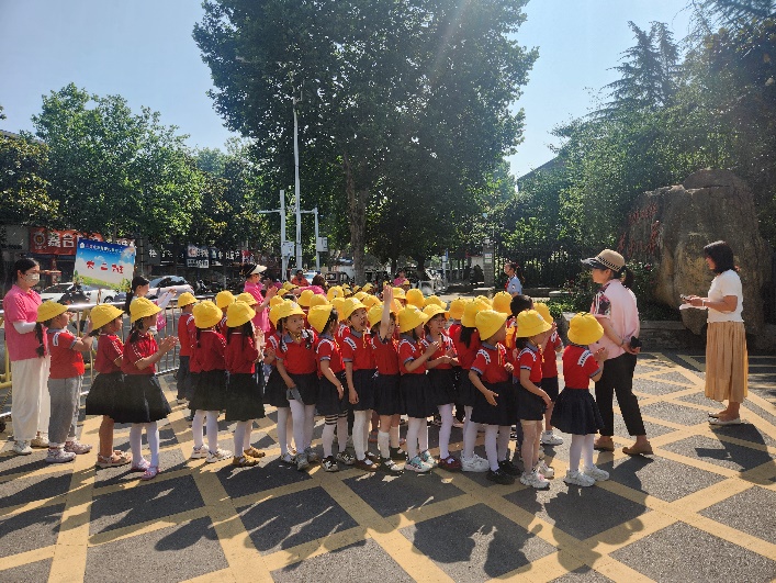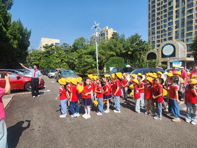 活动伊始,孩子们受到了佩戴着鲜艳红领巾的小学讲解员哥哥姐姐们的热情欢迎。在哥哥姐姐们亲切而生动的引导下,小朋友们排着整齐的队伍,开始了校园探秘的第一站。讲解员们指着校园中的建筑,娓娓道来学校的光荣历史和发展故事,解释了教学楼、文化长廊等标志性建筑的设计含义。孩子们仰着小脸,听得津津有味。这段特别的“校史课”,让孩子们不仅用眼睛看,更用心感受到了这所未来母校的文化底蕴和精神传承。