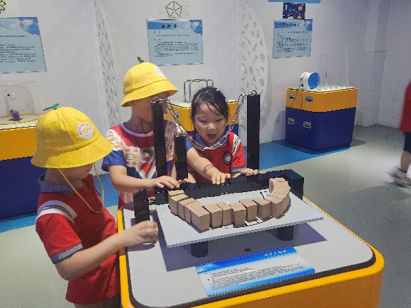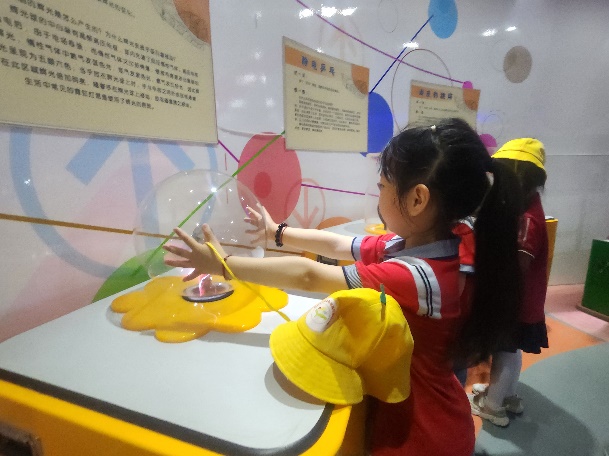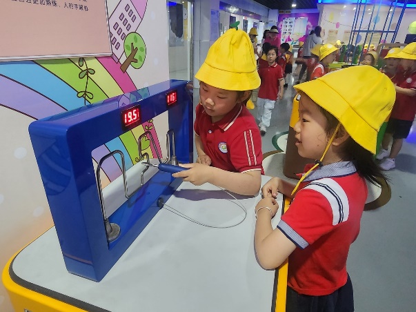 带着对校园历史的初步了解,孩子们兴致勃勃地走进了学校的活动中心,重点探访了科技体验馆。馆内丰富的科普模型、互动装置瞬间点燃了孩子们的好奇心。在讲解员和老师的指导下,小朋友们小心翼翼地触摸、观察,体验了简单的科学实验。童言童语中充满了探索的兴奋和对科学知识的向往,科技的种子在这一刻悄然播撒。