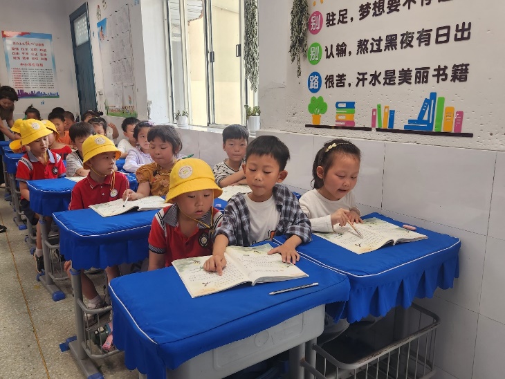 带着科技馆的兴奋余温,孩子们轻轻推开了一年级教室的门。窗明几净的教室、整齐摆放的课桌椅、哥哥姐姐们专注的神情,瞬间吸引了所有目光。在一年级老师的热情邀请下,孩子们和一年级的哥哥姐姐坐在一起,沉浸式体验了生动的小学课堂氛围。语文课上清脆的朗读声,数学课上有趣的数字游戏……每一分钟都让孩子们感到新鲜而向往。当老师亲切提问时,几位大胆的“小客人”甚至举起小手,奶声奶气地尝试回答,赢得了善意的笑声与鼓励的掌声。课堂不再是抽象的概念,而成了眼前触手可及、充满吸引力的奇妙天地。